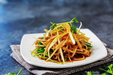 凉拌海蜇皮,说它是宴席第一菜绝对不夸张,凉拌海蜇皮是许多人参加大小宴席不容错过的凉拌拚盘的要角,凉拌后的海蜇皮越放会越入味,而且弹性不减,所以可以一次多做一些,放在冰箱里,就是可以夏日的方便常备菜了。