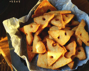 奶酪火锅人们熟知,但是用大大孔奶酪做饼干也是相当好吃的,制作时饼干不要擀的太薄,否则容易变形,烤的时候注意饼干烤至金黄时即可。