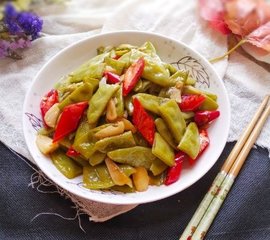 川菜馆里基本都有的一道菜,从生直接煸熟的四季豆香脆可口,并微辣而带肉香,非常值得回味。这道菜要注意,四季豆必须熟透,而不发焦;少部分脆黄为最佳。
