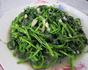 这道蒜泥空心菜是一道做法简单而且又美味的菜肴。蒜泥空心菜是夏天必不可少的菜,它就成为家常菜餐桌上的菜肴之一。空心菜是碱性食物,食后可降低肠道的酸度,预防肠道内的菌群失调,可洁齿防龋除口臭,健美皮肤,堪称美容佳品。