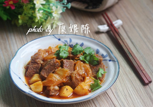泡菜牛腩的介绍:牛腩的做法很多,我们经常迟到的牛腩是用大料煮的,一般凉拌用的,吃起来味道很劲道,今天的这道泡菜牛腩是配上泡菜食用的,牛腩炒的很烂,吃起来口感也是不错的,在再加上泡菜的颜色非常鲜亮养眼,泡菜牛腩的做法请看下面地铺行网的讲解。