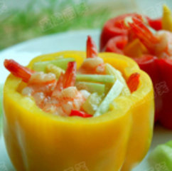 彩椒色彩鲜艳的,口感清爽,皮厚甜脆。虾营养丰富,肉质松软,易于消化。
