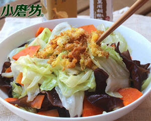蒜香芙蓉高丽菜,高丽菜富含维生素,先汆烫后再炒,加入蒜风味油将菜色炒的清脆又鲜甜,并撒上充满蒜香蛋酥,能让料理口感清爽不油腻,色香味俱的美味佳肴!