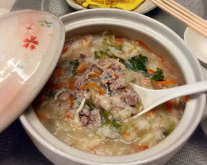 酸菜肉丝粥,天气热,胃口不好,可以煮锅酸菜肉丝粥,加上时蔬、菇类,撒上一点白胡椒粉,当早餐很开胃,让您在新的一天中充满活力,同时营养健康,带给身体增添活力。