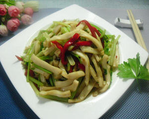 这的芹菜炒鱿鱼的做法特别简单,而且营养价值非常高,其富含蛋白质、钙、牛磺酸、磷、维生素B1等多种人体所需的营养成分,且含量极高。此外,脂肪含量极低,是名贵的海产品。