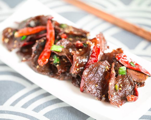 瓦片牛肉介绍 瓦片牛肉是重庆的街头美食,来这旅游的游客都会品尝一下这道小吃,牛肉吃起来非常的有韧性,需要有好的牙口,经过油炸味道更加的香,在辣椒的参与下,牛肉变得更加的美味,虽然辣,但是仍然停不下口,还想吃,快来品尝吧!