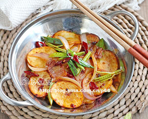 今天推荐的这道菜,我猜十个有九个爱,应该不过分吧,因为确实很不错呢。想想炸薯片都已经很好吃了,用炸薯片来炒五花肉,那个味道更赞。很多人怕胖可能不敢吃五花肉,没关系,那么土豆就可以随便吃啦,油炸后的土豆干香绵软甚至比五花肉还要好吃,最后你肯能会发现土豆少了点哦。其实五花肉煎过香香的一点也不腻,我比较喜欢吃肉,这道菜,土豆片和五花肉我都无法抗拒啊。