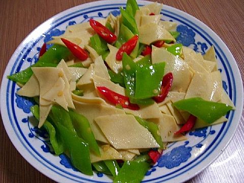 尖椒干豆腐介绍:尖椒干豆腐是东北的一道名菜,源于汉族,被东北人称为国菜。豆腐里面含有丰富蛋白质,可以提供人体所需的氨基酸,可以防止肝硬化及心血管疾病,东北的干豆腐又薄又筋道,切成丝细与尖椒一起爆炒,既有嚼劲又辣味十足,同时二者相互搭配,营养丰富,一般人都可使用。下面简单看一下尖椒干豆腐的做法。