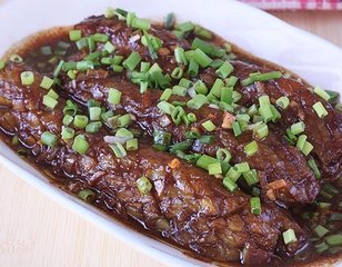 川菜馆里基本都有的一道菜,从生直接煸熟的四季豆香脆可口,并微辣而带肉香,非常值得回味。这道菜要注意,四季豆必须熟透,而不发焦;少部分脆黄为最佳。