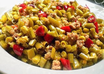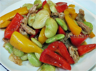 彩烩皇帝豆,好吃健康,热炒的皇帝豆松脆度在炖汤凉拌之间,热炒的豆烩肉片因为素蚝油多了酱香的气味而味美肉香。然而皇帝豆具有健脾壮肾、增强食欲、抗风湿、补血补钙,和治疗冠心病的功效,虽然有利肠整胃作用,但食后易饱胀闷痛的人不宜多吃哦!
