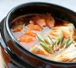 韩式泡菜汤这道韩国名菜材料简单,口味非凡,辣得刚刚好也酸得刚刚好。酸辣中又配了温和敦厚的老豆腐和白菜,暖人的舌头和心。这是一道够味却又含蓄的菜,恰到好处的口感让人不觉得腻。