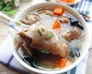 这道清炖猪脚汤的做法特别简单,而且营养也非常丰富。清炖猪脚汤即以猪蹄,胡萝卜,黑木耳为主要材料清炖而成的一道佳肴。清炖猪脚汤含有丰富的胶原蛋白,美容养颜,生津润燥,增强皮肤弹性和韧性、延缓衰老和促进儿童生长发育,是著名的美容食品和滋补佳品。