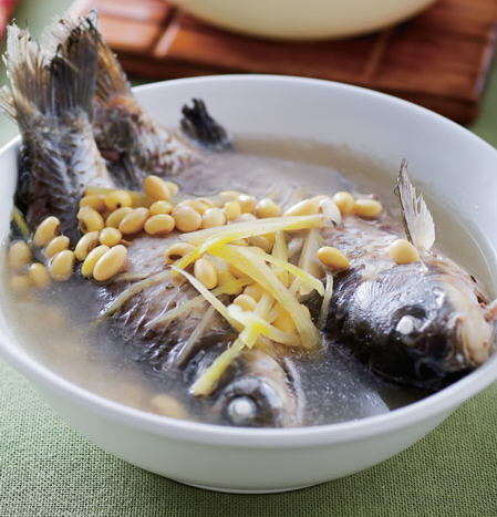黄豆煨鲫鱼介绍 在家煮黄豆煨鲫鱼的时候要把鲫鱼给烫一下,这样煨出来鲫鱼味道鲜美,没有一点点鱼腥味,汤汁非常好喝。 黄豆煨鲫鱼的做法请看下面地铺行网的讲解。