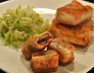 年糕卷的简单做法讲解。年糕卷用的原料是年糕奶酪和馄饨皮,制作方法是用油炸至金黄,做法非常的简单吃着皮脆里糯的美味。好吃的年糕卷怎么做请看地铺行网的教程。