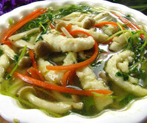 地铺行网教您怎么做五彩鱼丝汤,五彩鱼丝汤是一道菜色多彩漂亮,口味丰富的家常菜。并且是吃起来有鱼鲜有肉香又有新鲜菜蔬的美味佳肴,清淡与浓郁两种味道相辅相成各有千秋。 五彩鱼丝汤的做法请看下面的详细讲解。