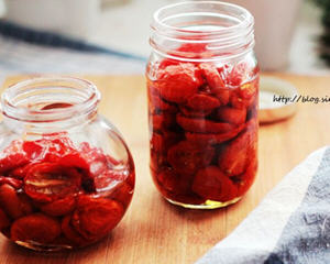 在家做这款小吃也超简单,用橄榄油和晒干的小番茄混合在一起即可,制作时先将小番茄烤干后在浸泡,烘烤的时候自己看番茄的颜色来定,烤干即可。