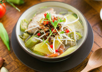 今天介绍的越南的罗望子酸汤(Canh chua),是南越湄公河三角洲一带的家常菜。这道汤以罗望子(tamarind,酸角或者酸子)果肉做底,配以菠萝,蕃茄,秋葵等蔬菜,加上非常典型的越南香草们,比如芋头杆儿,稻米草,刺芹,九层塔等,延续了越南菜一贯的清新健康.
