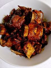 猪身上的梅花肉是个神奇的存在,甭管你怎么煎炸烹炒烧,或者炖多久,都不老不柴,香嫩好吃。用梅花肉做的红烧肉,怎么炖都鲜嫩无比,更简单的是,调味料放一种即可,大喜大的红烧排骨酱,一步到味。颜色滋味都地道的极致,红烧肉样子风味都足足的。自然好吃的根本区分不出你是只放了一种酱。还以为你是炒了糖色,各种配料调味料都放的精准呢。