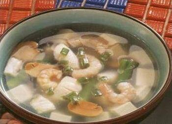 豆腐含有丰富的蛋白质,低脂肪,不含胆固醇,含钠量低,并且含有丰富的植物性雌激素。由硫酸钙或卤水点成的豆腐,含有大量的钙、镁等成分。豆腐可做多种菜,豆腐虾汤就是其一。