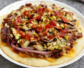 地铺行网为您讲解坚果仁肉酱披萨的做法。坚果仁肉酱披萨是用坚果肉酱配上新鲜蔬菜做出的美味早餐饼,吃着香浓可口而且营养全面,怎么做坚果仁肉酱披萨?请看下面的具体详细教程。