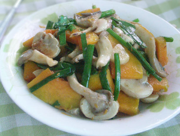 双菇炒南瓜介绍:双菇炒南瓜是一道做法简单的美味美食,只需要将各种食材搭配在一起处理熟了即可,没有什么技巧可言。这里主要取材于口蘑和平菇、南瓜这三种食材,其中前两者是菌类,都含有着丰富的氨基酸、矿物质和维生素,经常食用可以美肤养颜,并且营养价值之大,热量低,南瓜含有丰富的纤维素,可以瘦身美体,排毒减脂,三者搭配在一起做成的这道双菇炒南瓜在美味的同时,美肤又瘦身。