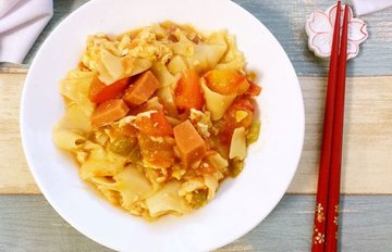 烩面的家常做法怎么做好吃呢?西红柿鸡蛋熬出来的汤汁加上面片,味道鲜香,好吃又好看哦。