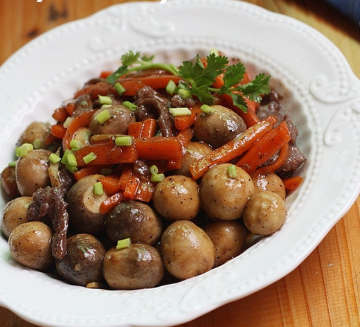 黑椒草菇炒牛肉介绍:今天就分享一道非常适合做上班族他们的快手菜黑椒草菇炒牛肉,简单方便,为忙碌的上班族节约时间,即使面对高温天气依旧让人胃口大开。草菇含有人体必需的8种氨基酸,能促进人体新陈代谢,提高机体免疫力。营养价值十分高,还有素中之荤的说法.草菇口感爽嫩鲜美. 这次用牛肉、草菇、胡萝卜条为食材,黑椒和牛肉很搭,所以放了一勺黑椒酱,味道香浓。