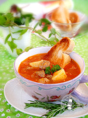 煲好的番茄牛肉汤香味浓郁、口感微微酸甜、开胃健脾,搭配上烤脆的法棍面包片,有肉汤、有主食,即成方便、美味又营养的一餐,番茄牛肉汤怎么做好吃?请看下面地铺行网番茄牛肉汤的做法图文讲解。