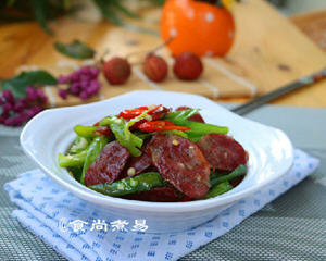 这道杭椒炒腊肠的做法非常简单,而且营养也特别丰富。这湘味腊肠是经过烟熏的,为了保险起见,先将腊肠洗净,再放入锅大火中煮15分钟,捞起切片后和辣椒一起爆炒,炒制腊肠时,味道闻起来虽辣,吃起来一点也不辣,比湘菜馆里的小炒还好吃。