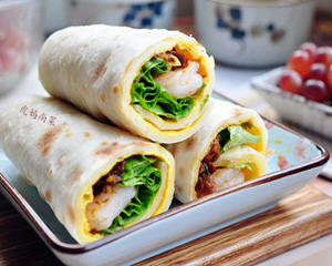 街头有一个路边摊,天天早上生意火爆。它主打产品就是鸡蛋卷饼和稀粥,我学着在家做,发面的,很柔软,面香味十足。鸡蛋是模仿着贴在饼上面的,蛋香与面香各自精彩。内容是爱卷啥就卷啥,让好吃与营养兼顾。
