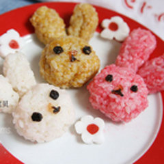 可爱的兔宝宝饭团,颜色和形状诱人,小朋友看到了会舍不得吃。草莓可以做什么吃?做成兔宝宝便当就很不错。