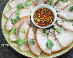 五花叉烧肉,这款叉烧肉是偏向日式叉烧的做法,但卤料则是用中式卤肉的材料,味道和香气都比日式叉烧来的浓郁。将叉烧肉切薄片,沾蒜茸酱油吃,就是一道简单的下酒菜,或者放在汤面里也不错吃呦!