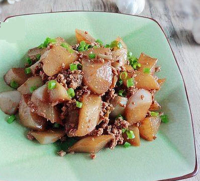 肉末白萝卜介绍 白萝卜是现在正是食用的一种美味食材,它有着滋肺润燥的作用,秋季干燥易上火的时候食用还有着清热解毒的作用,萝卜性寒,所以在秋冬季节食用萝卜最好是炖煮,这样做出来的萝卜吃起来会更加的有利于身体健康.