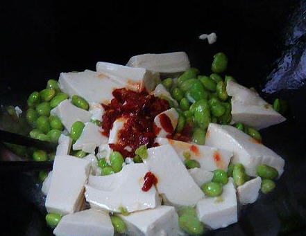 毛豆烧豆腐介绍 毛豆烧豆腐是用毛豆和豆腐一起炒制而成的一道美食,吃起来清新爽口,美味十足,十分下饭,多吃豆制品对增加皮肤弹性,提高免疫力,美容养颜都有很大的作用哦,豆腐作为夏季尝试的一种食材,有凉拌有清蒸,各有特色.