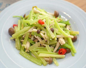 现在芹菜刚刚上市,个个都很新鲜漂亮,今天就用芹菜大蒜一起炒鸿喜菇来吃, 这是一道清爽的蔬菜料理,制作方便也很适合带便当喔。