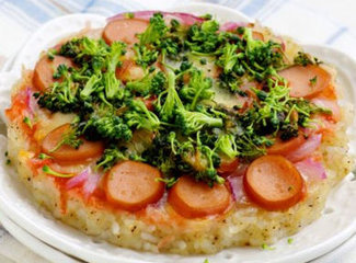 地铺行网为您讲解火腿洋芋米披萨的做法,教你巧用剩米饭和土豆做一道西式的披萨,用火腿和西兰花搭配,不仅色泽漂亮而且营养丰富,是中西合璧的美味佳肴。怎么做火腿洋芋米披萨?请看下面的详细教程讲解。