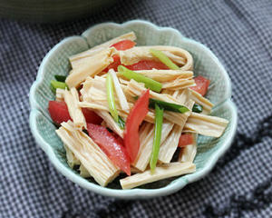 这道番茄拌腐竹的做法非常简单,而且营养也特别丰富。这道番茄拌腐竹是一道非常清爽有味的凉菜,又酸爽开胃,营养丰富,非常适合高温天气,不想开火的厨娘们。
