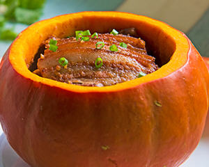 粉蒸肉原本是川菜中的一种,不过现在大家自主做饭的时候其实完全可以加入自己的想法,就像金瓜就可以换成其他的来盛,要是想更具欣赏,就换点好看的。
