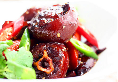 皮蛋具特殊风味,能促进食欲。皮蛋三素中三素的颜色混合在一起,让人看了食欲大增。