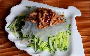 拉皮的做法非常易学,只需要将黄瓜丝、肉丝和拉皮用调料拌匀即可。拉皮怎么做?请看下面地铺行网小编巧妇的拉皮的做法讲解。