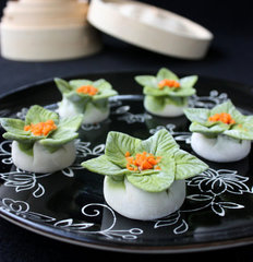 做花式蒸饺最重要的就是和面的过程,和出来的面团一定要口感柔软,它会因为所用面粉吸水量的不同而需做出调整,建议面和得稍硬一些,面太软不好包