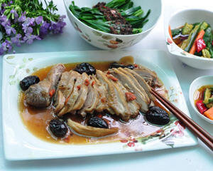 贵妃醉鸡,炎热的天气,非常适合做冷盘料理“贵妃醉鸡”,只要简单的调味,放入电锅炖煮后放凉,就能享受清凉醉香,用来宴客时搭配典雅盘组,更能衬托出美味!