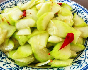 这道素炒葫芦片的做法简单,但也是一道营养丰富又美味的家常菜。这道菜的特点是肉香咸辣,色泽略红,嫩嫩的很好吃。葫芦常吃可增强抵抗力,抗病毒的作用,还有清热利尿、除烦止渴、润肺止咳、消肿散结等疗效。