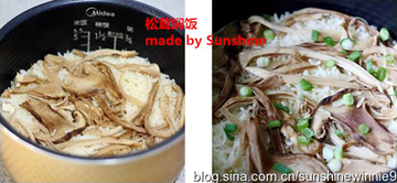 松茸焖饭不需要太复杂的工艺,完整的保留了松茸和米饭的原味,食之爽口,回味无边。松茸营养丰富,实为野生蘑菇之王,松茸具有强身、益肠胃、止痛、理气化痰、、驱虫等功效,同时还具有治疗糖尿病、抗癌等特殊作用。喜欢健康养身的朋友不妨试试!