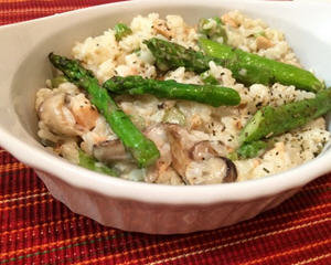 鲑鱼芦笋奶油饭,吃腻义大利面了吗?把面条换成白饭换个口味吧!简易版鲑鱼芦笋奶油饭,30分钟上菜!好吃美味又营养健康!小伙伴们快来试试吧!