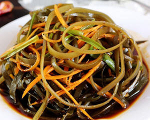 这道凉拌海带丝是一道家常菜,这菜做法特别简单,营养也非常丰富。这道菜是用发海带,胡萝卜,小葱等制作而成,做起来简单快捷,而且非常好吃,所以在平常的菜肴制作过程中要多样搭配。