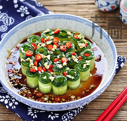 黄瓜要入味儿,非得酸酸辣辣才能爽脆开胃;热油也有讲究,平时吃的食用油里一定要加点儿花椒油或藤椒油,吃起来回味无穷!黄瓜卷成卷,一口一个,特别过瘾!
