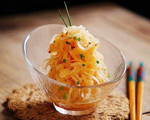号称小人参的白萝卜在这个时节还是脆口的时候,廉价食材就能轻松做出这道好吃的香拌葱油萝卜丝,还能达到清肠养身,体内代谢的最佳效果,葱油是这道拌菜香气的来源,炸点葱油,可以适用在各种冷盘凉拌菜中,香气逼人。看似清淡的小菜,吃在嘴里可是十足的享受,脆口,开胃,解腻,绝对的一口接一口,低负担美食,为了将大衣脱掉后,身上白花花的胖胖肉不出来吓人,这段时间,吃货也要尽量忍忍吧!一起努力!