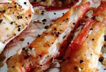 帝王蟹活的最好做法就是清蒸,冷冻的话吃法随意了,不过葱姜炒还是有点浪费,拿烤箱烤是个折衷的方法。