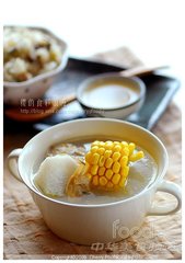 玉米山药花蛤鸡汤用的材料随处可见,非常简单。它的甜度来自玉米,浓稠度来自新鲜的淮山(大和芋),有鸡汤的浓厚也有海产的甘甜,补充体力,补气